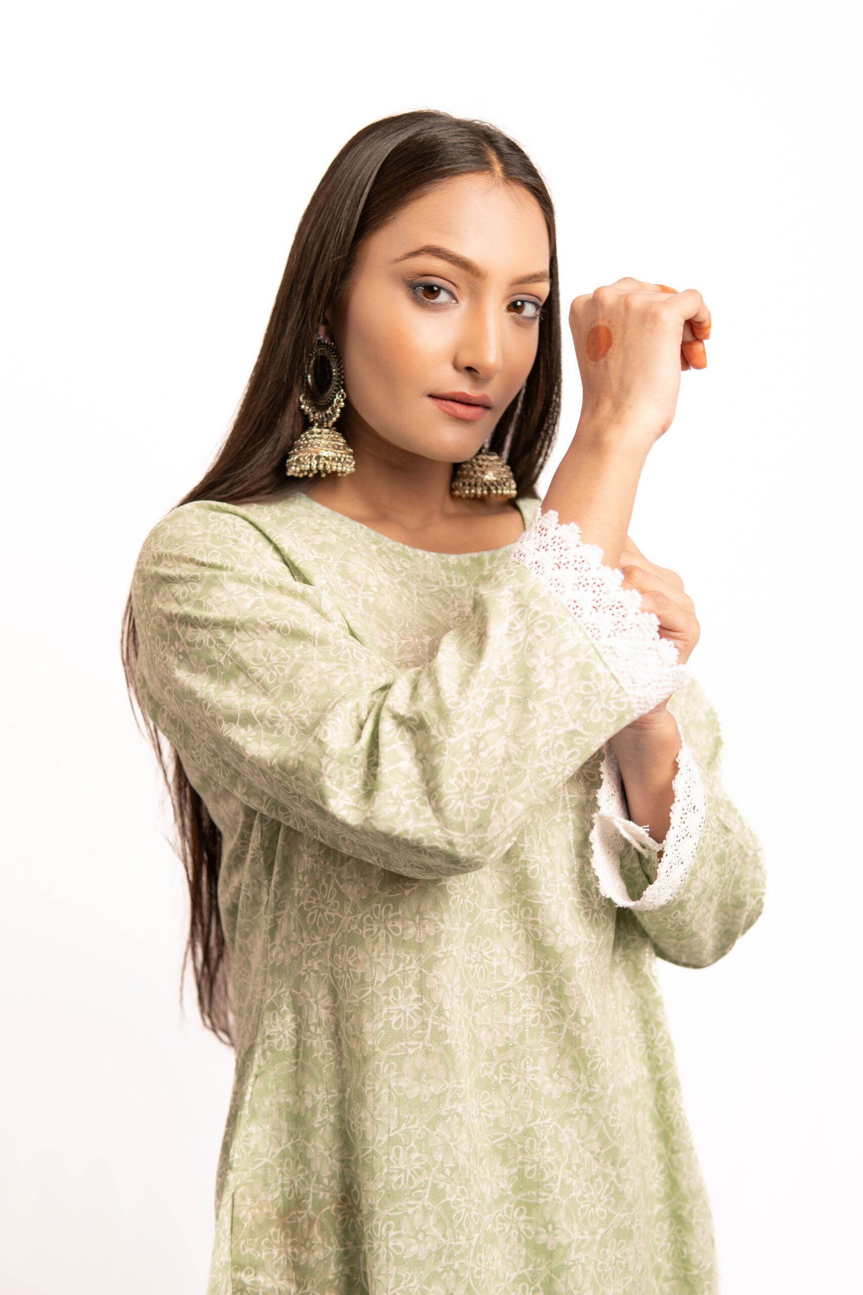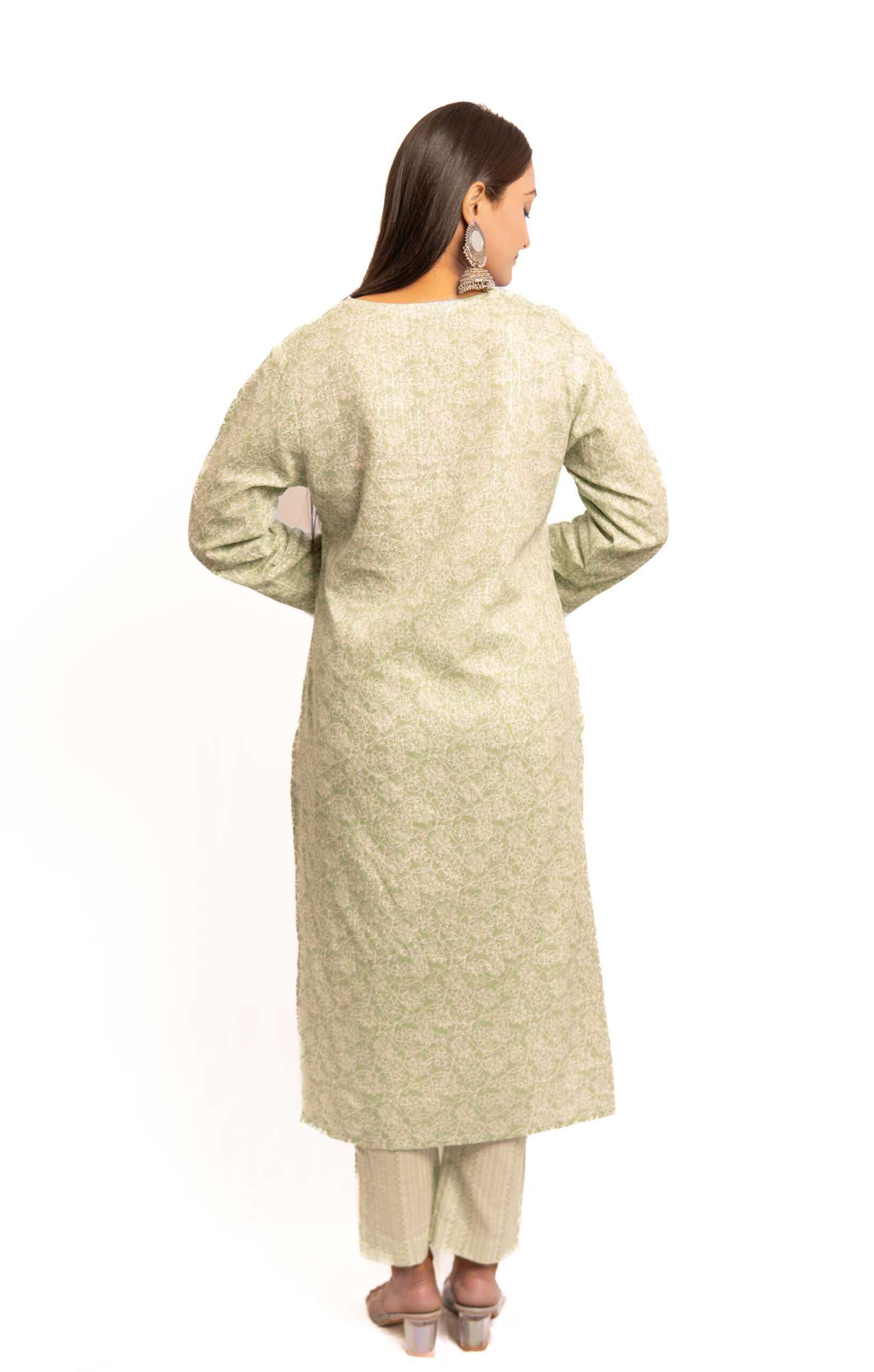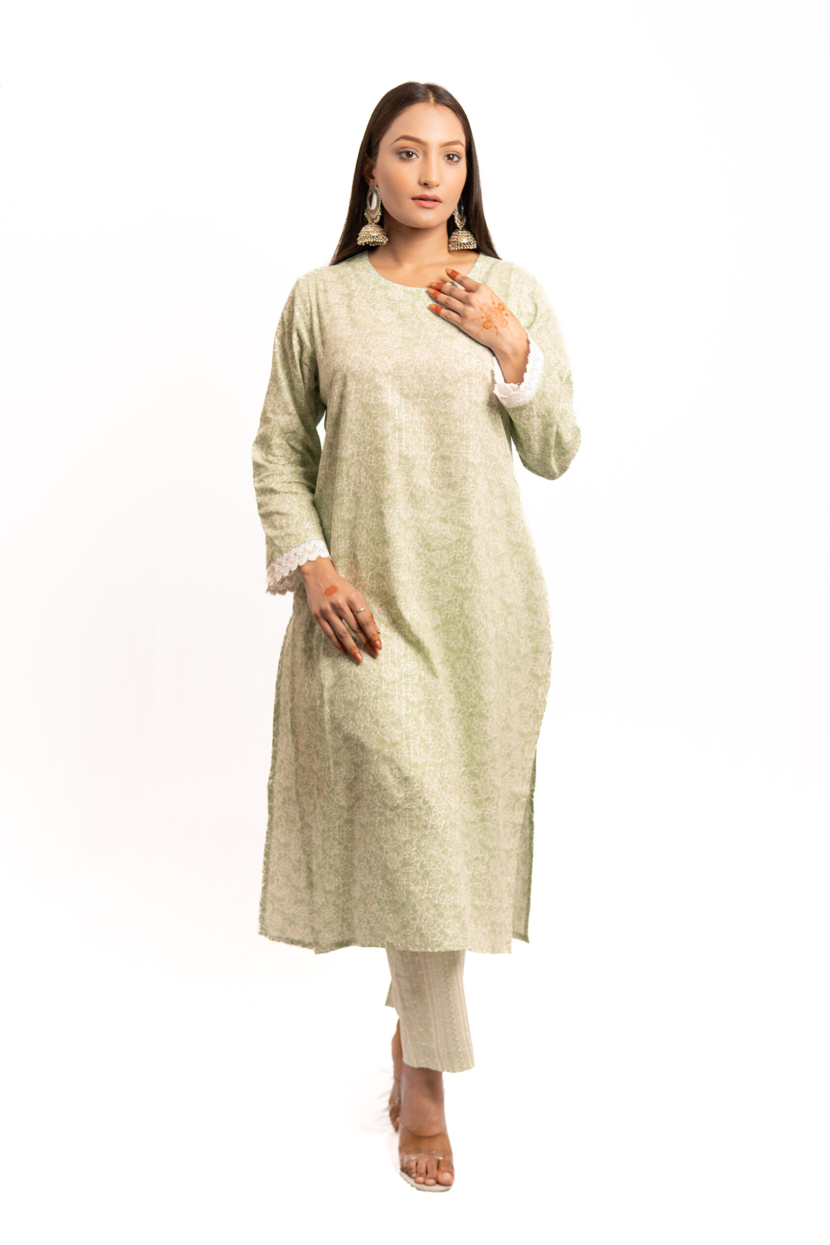 - Muted Tones: The floral design incorporates muted tones, ensuring a harmonious blend with the light green backdrop.