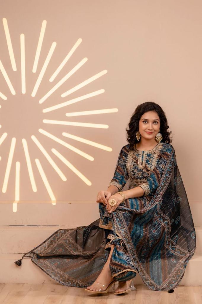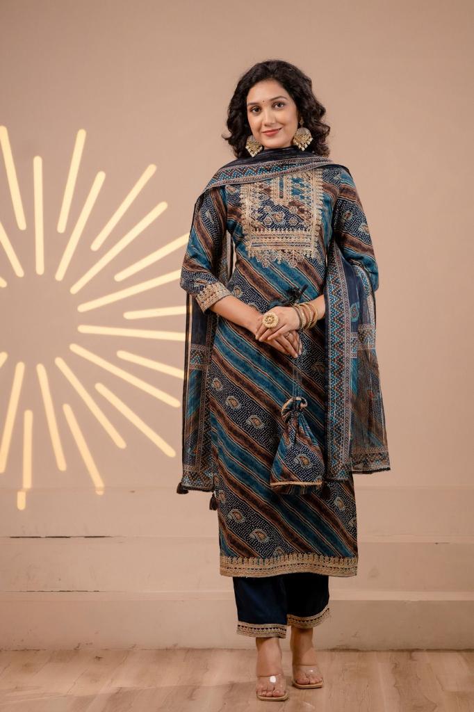 Statement: Make a statement with this blue and brown striped suit – a fusion of classic charm and contemporary edge.