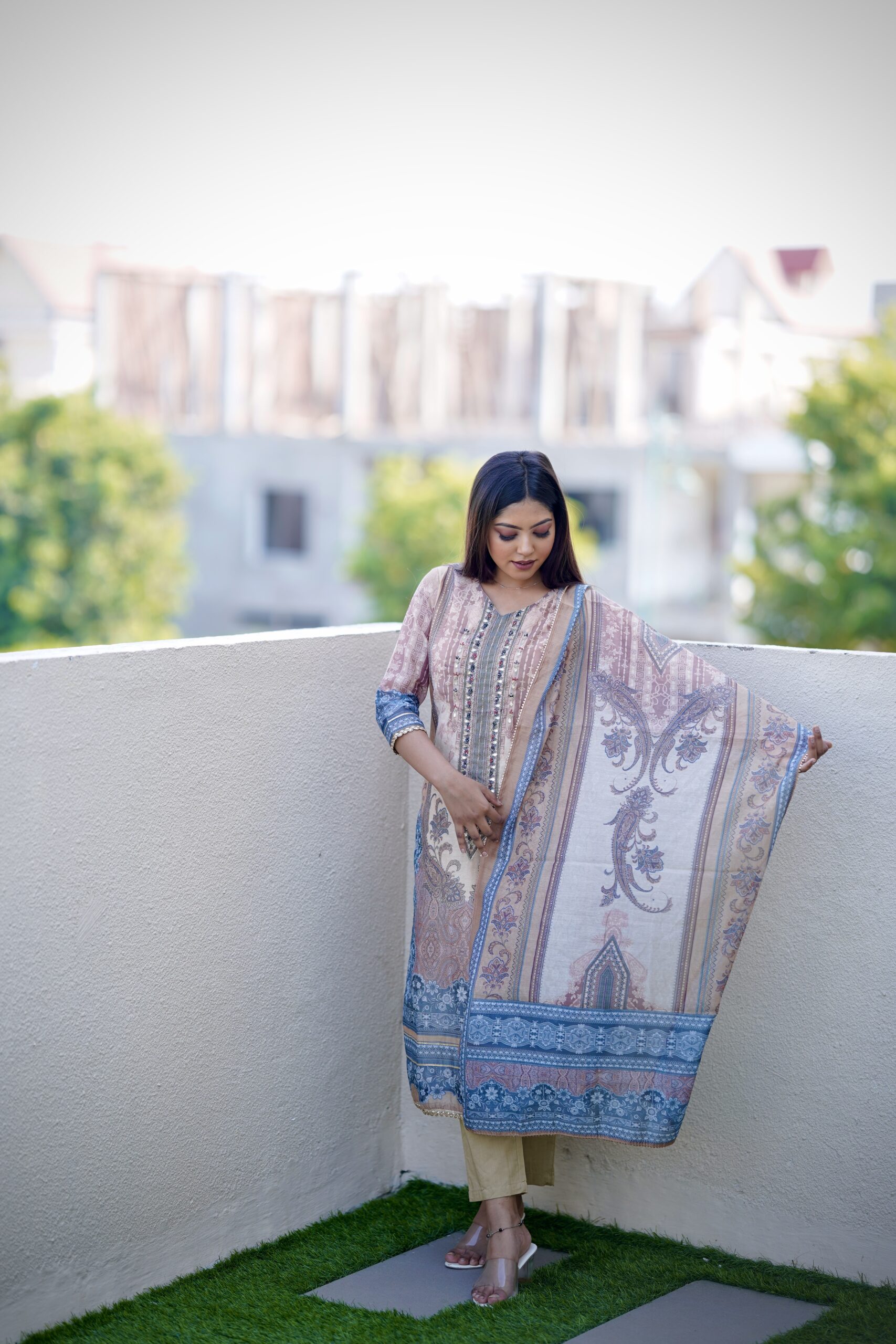 Care Instructions: To maintain the beautiful color combination and the quality of the fabric, we recommend dry cleaning. This will help the suit stay in excellent condition and preserve its unique charm.