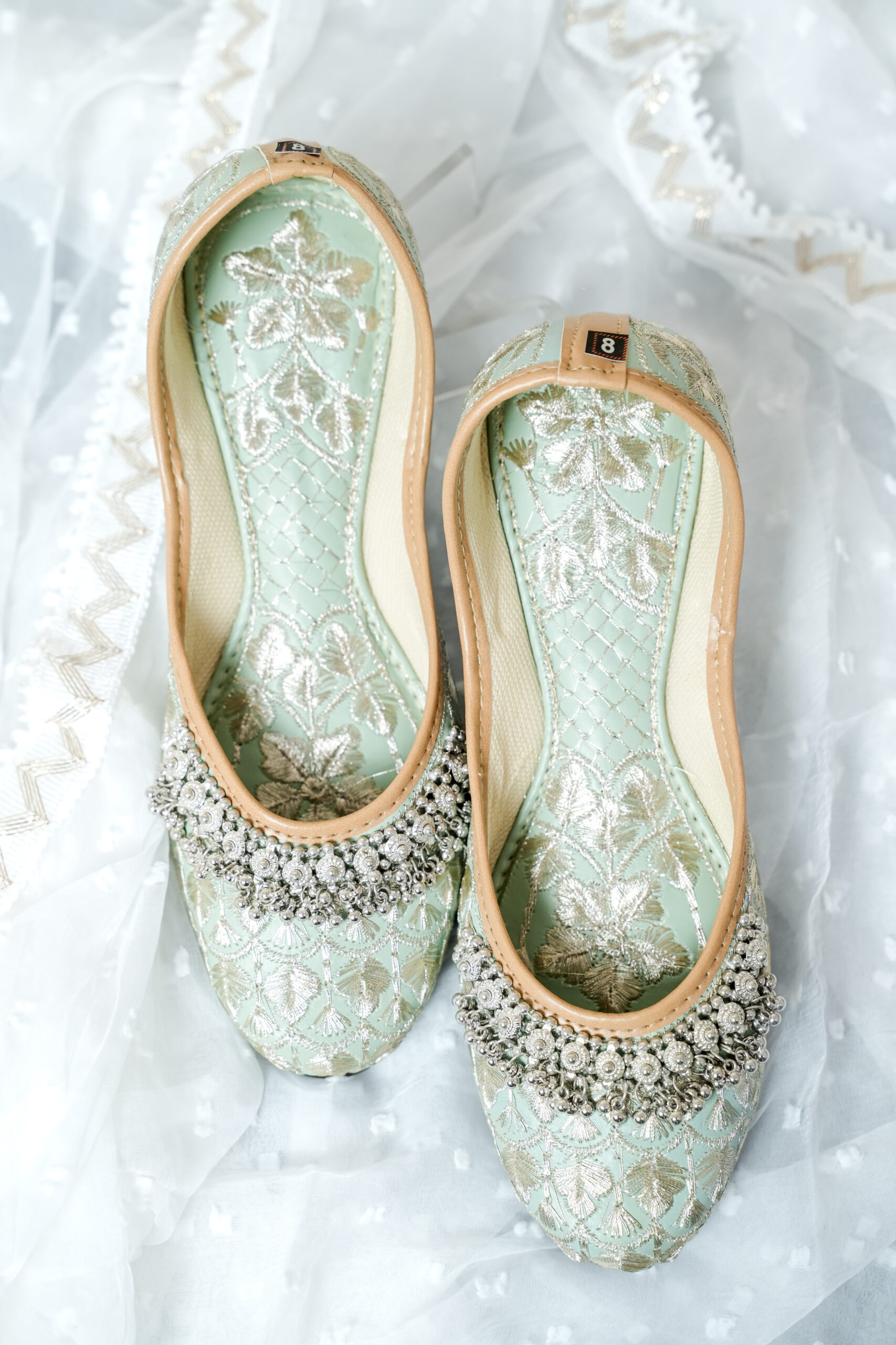 Care Instructions: Maintain the quality of these jutis and the intricate silver motifs with gentle cleaning. Preserving the velvety texture and vibrant pista green hue ensures they remain in impeccable condition for repeated wear.