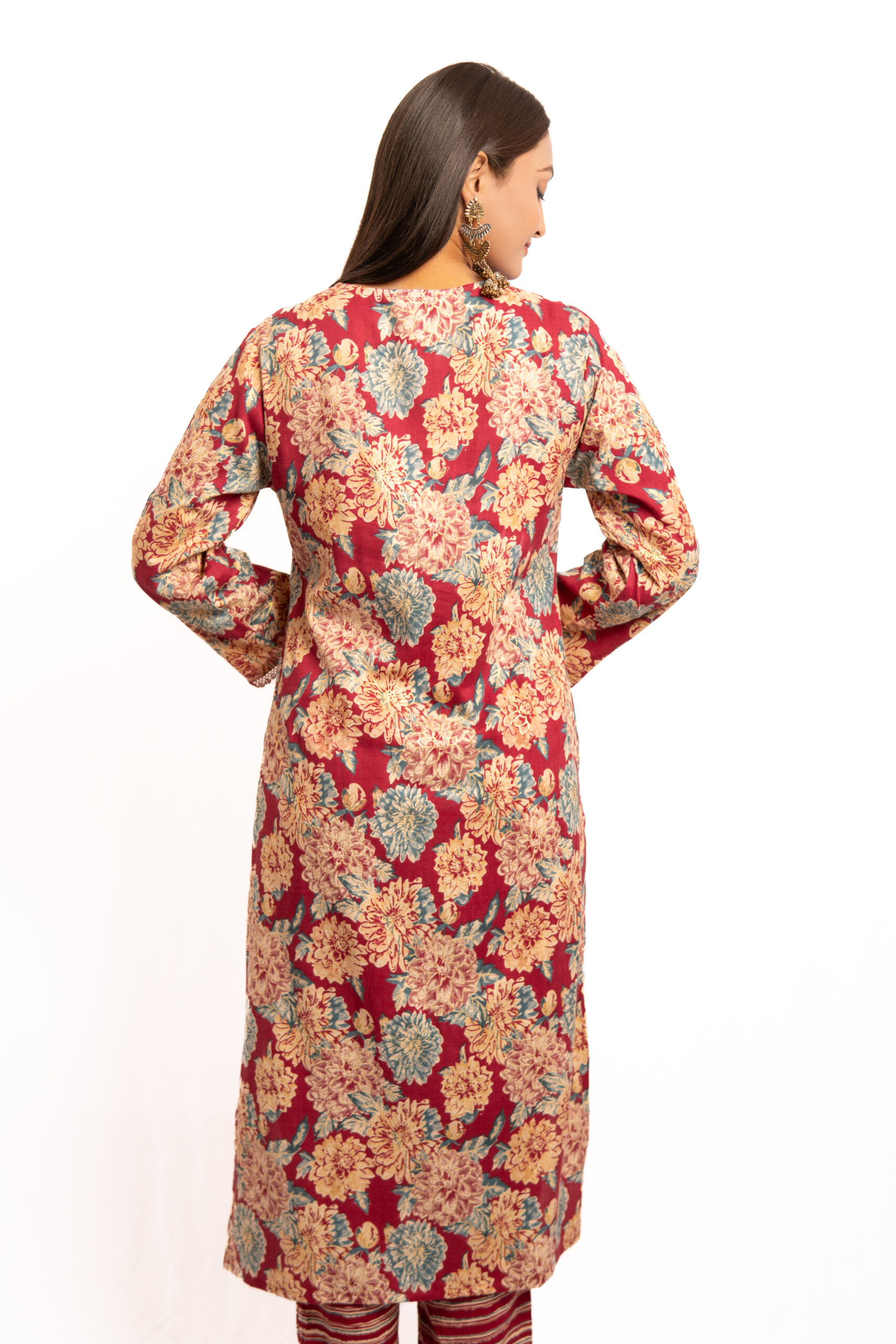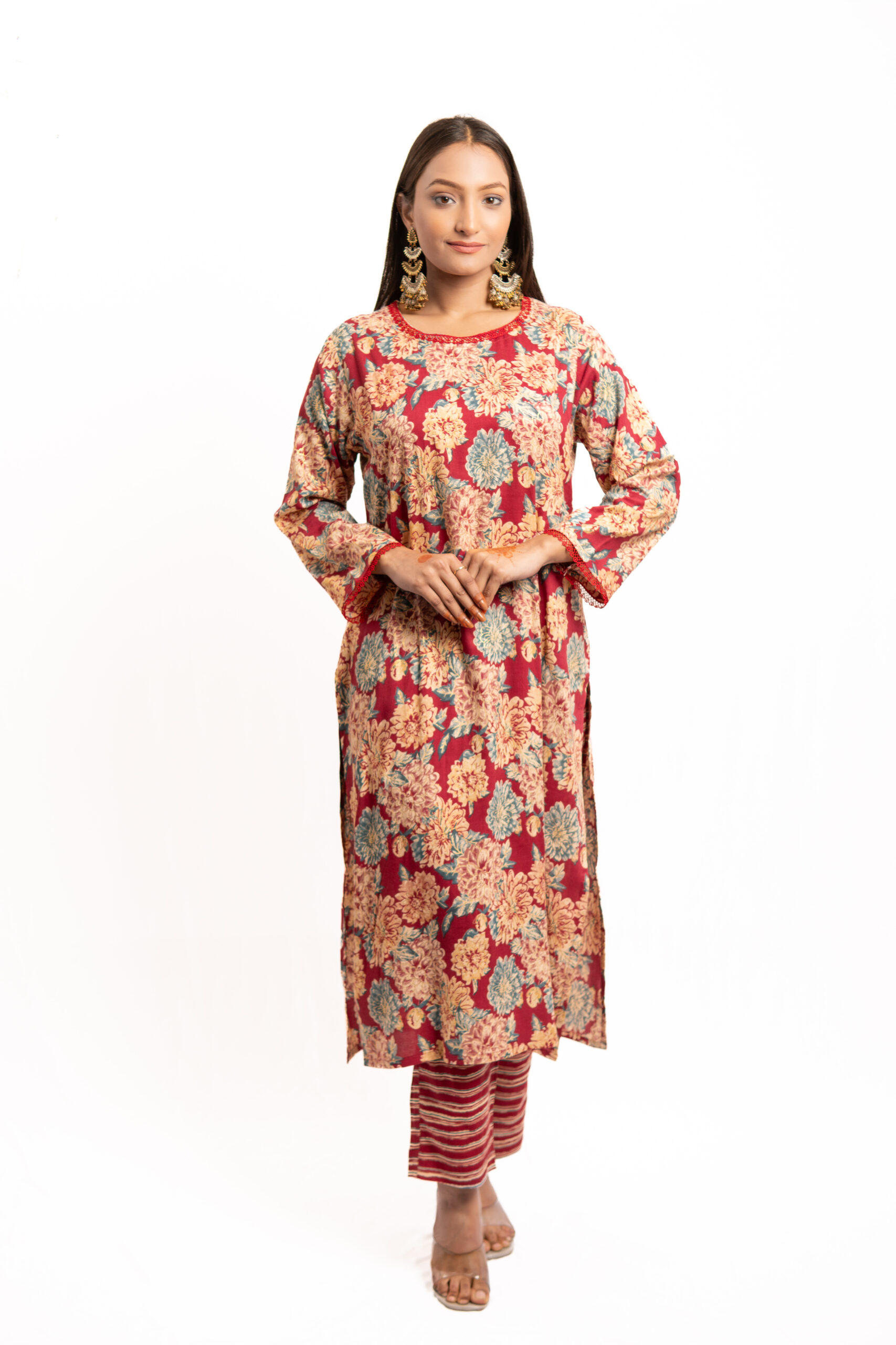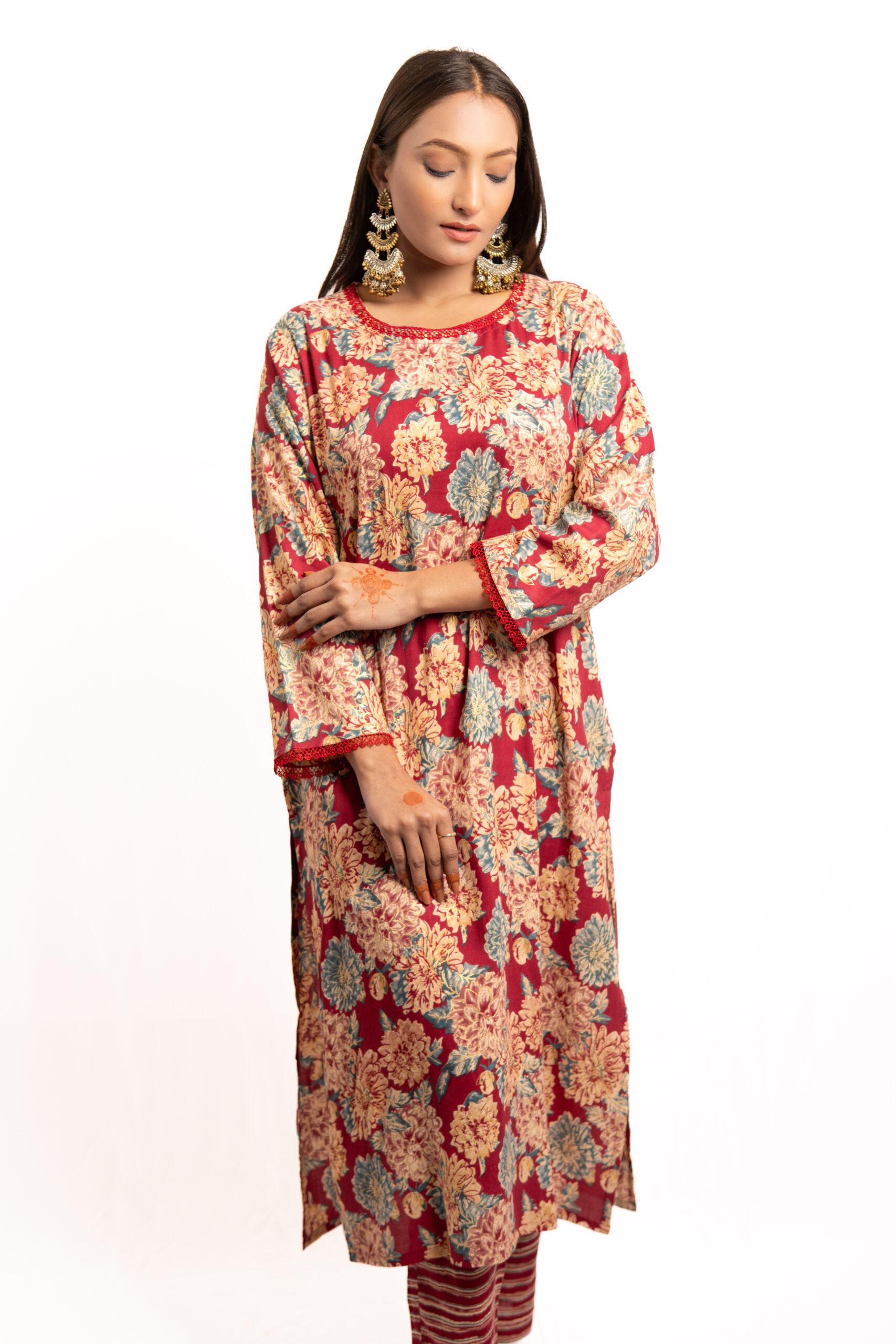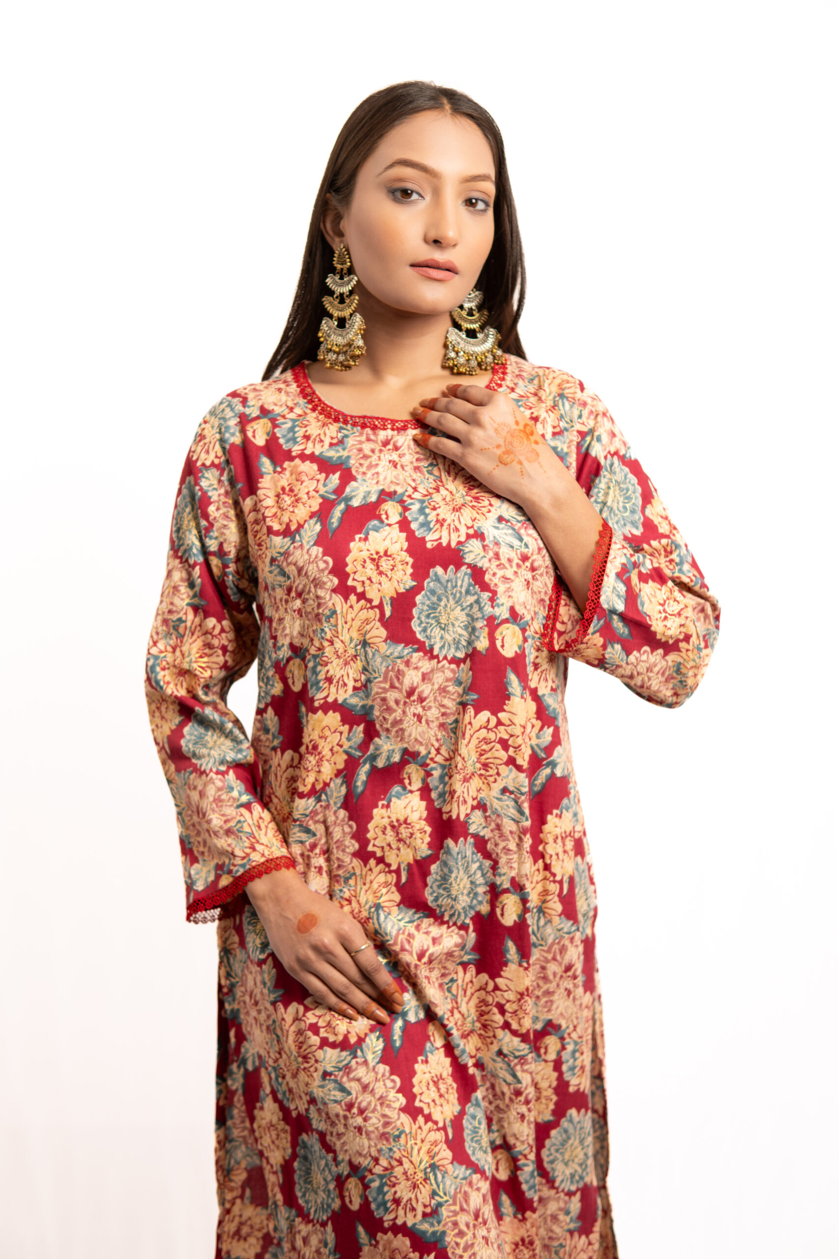 - The red hue enhances the richness of the floral prints, ensuring an eye-catching appearance.