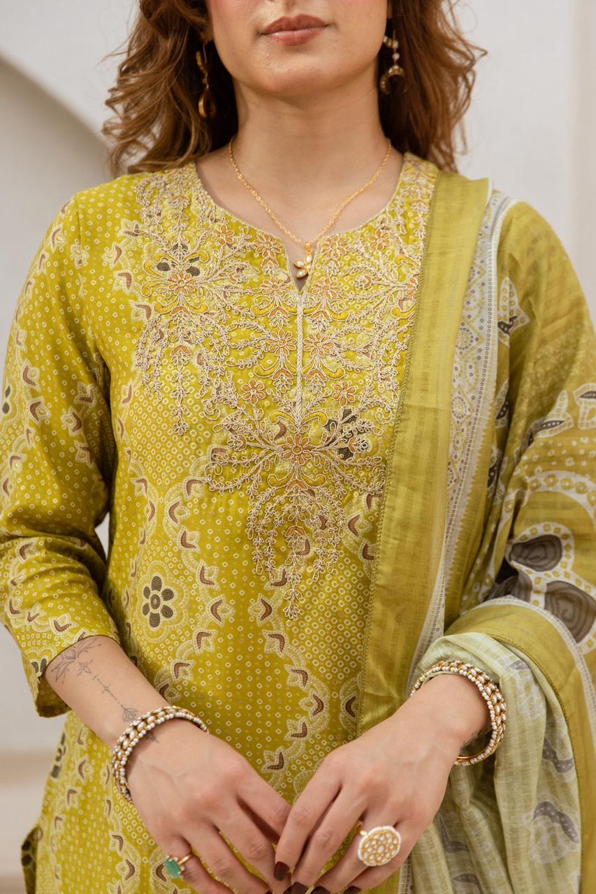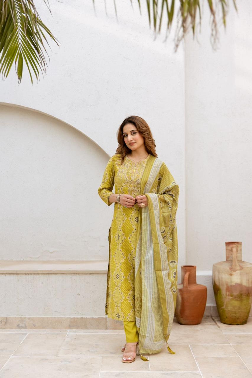 “Soft Glow Pale Yellow Muslin Suit – Subtle Elegance in Every Thread”